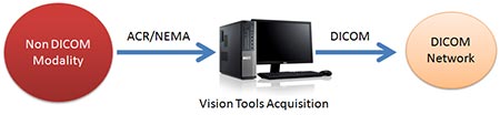 - No need to use frame grabber cards to grab the images from the modalities [no raw data only 8 bit].